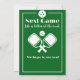 Spela på för rolig pensionärstid! Vi presenterar vår 'Nästa spel' inbjudan, där modern design möter pickleball- passion. Den gröna bakgrunden, markerad av en skarp vit kant och en lekfull pickleball-grafik, sätter den perfekta tonen för din fest. Anpassa varje detalj, från namn till datum, och gör dig redo att samla vänner och familj för en pensionärsfest som ingen annan!