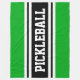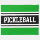 Den här sportiska designen har en atletisk PICKLEBALL-text inuti ett markerat svart rand med intilliggande dubbla vita ränder mot en ljus grönt bakgrund. Färg och text i den här utformningen kan vara personlig.