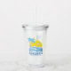En plasttumlare för pickleball i roligt med en pickleball "sol" inramad av ett tropiskt handflatan träd och ett blått hav vinkarare. Lägg till din anpassningsbar nedan - klubb namn, pickleball helg datum/plats, turnent namn, player namn, etc. Gör en perfekt till valfri pickleball-spelare.