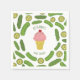 Babyduschservetter med en roligt gravid-klyvningstema. Gräns är illustrationer av pickles och pickelskivor. Centrumet har en jordgubbsmassa som fylls med körsbär och sprinkler. Anpassa texten. Matchande inbjudningar, pappra tallrikar och mer finns på Jill's Paperie.