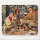 Denna datormousepad presenterar en vintage som är grafisk av en far och en son som tuggar sönder samman med deras picknicklunch under en jaktresa. En underbar fars daggåva!