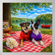 Luna Bostonterriern och Louie JackChin njuter av lite ledig tid med en picknick under ett träd, vid sjön, och kanske en rodd senare.