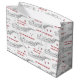 Unik presentväska med pickupa illustrationer och hjärtan i lastbil på vit bakgrund, tillsammans med ord "Detta är min bästa pickupa linje... Kommer du att vara min Valentine?" Roligt, humoristisk design som är perfekt för en ge present till eller från pickupa lastbil fläkt. Originaldesign, copyright Jennifer Kistler 2022.