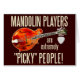 Design har ett F-5-mandat och säger "Mandolin Players are are Extremt "Picky" People!" För dem som inte skäms för bäran är deras passion och en dålig pun på deras skjorta (eller visning den i hemmet/på kontoret).