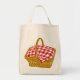 En stiliserad bild av ett pickniskt basket. Föreställ dig den utsökta mat som finns i detta söta picnic basket med rött och vitt täckmantel.
