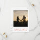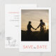 Det här sparar datumkortet är perfektens blandning av modern och avslappnad, med ett svart och vitt minimalistiskt tema som accentueras av en orange. Kortets framsida ger möjlighet att visa en speciell bild, vilket gör att du kan få en personlig beröring när du annonserar det kommande evenemanget. På baksidan kompletteras avslappnaden och den informella ordalydelsen av enkel typografi i ett kol-färg, som skapar en avslappnad och inbjuder till känslor. Tillägget av en minimal illustration av konturkonsten som innehåller ett par som håller händer med en guldfärgad hämtare som är bunden till en skylt tillför en viss charm och värme till den övergripande utformningen. Att spara datumkortet är ett underbart sätt att informera dina gäster om din speciella dag på ett snyggt och uppriktigt sätt.