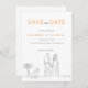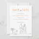 Det här sparar datumkortet är perfektens blandning av modern och avslappnad, med ett svart och vitt minimalistiskt tema som accentueras av en orange. Kortets framsida ger möjlighet att visa en speciell bild, vilket gör att du kan få en personlig beröring när du annonserar det kommande evenemanget. På baksidan kompletteras avslappnaden och den informella ordalydelsen av enkel typografi i ett kol-färg, som skapar en avslappnad och inbjuder till känslor. Tillägget av en minimal illustration av konturkonsten som innehåller ett par som håller händer med en guldfärgad hämtare som är bunden till en skylt tillför en viss charm och värme till den övergripande utformningen. Att spara datumkortet är ett underbart sätt att informera dina gäster om din speciella dag på ett snyggt och uppriktigt sätt.