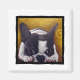Fransk Bulldog art av Angela Renna Teixeira. Ett sött pied frenchie-redo för tupptid.