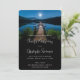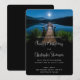 Bröllopsinbjudan med ett vackert foto av en träpir som sträcker ut över en lugn sjö. Natten himlar täckt med stjärnor och ett vackert fullt måne.