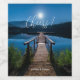 Flaska-etiketter med ett vackert foto av en träpir som sträcker ut över en lugn sjö. Natten himlar täckt med stjärnor och ett vackert fullt måne.