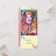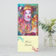 Färgrik, livfull och fantasifull karnevalsfigur med röda och blå blomsterkransar, växter, bär, akvarellmålning i ljust rött, gult, vitt, lila inspirerad av Karnevalen i Venedig och Commedia dell'Arte.