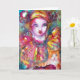 Färgglad, livfull och fantasifull akvarellmålning i ljust rött, gult, blått, vitt, lila inspirerad av karnevalen i Venedig och Commedia dell'Arte.