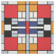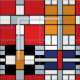 Denna olja på duk från 1920 visar en komposition med svarta, röda, gråa, gula (orange) och blåa block i en stil som kom att kallas De Stijl eller Neo-Plasticism.
