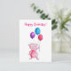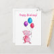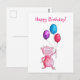 Pigmenterad rosa gris med ballonger vykort