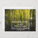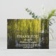 Minnes- och sympati tackkort, med ett elegant gråtande pilträd över vatten, det har en svart överlagring med vit text. Personifierad med personens namn och ett tackmeddelande.