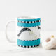 Trioen av pilatesfigurer cirklar en mugg i svartvitt med en kontrollerad gräns. Bakgrundsfärg kan skräddarsy.