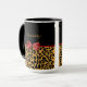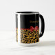 En moderiktig mugg för mönster för svart- och guldleopardtryck med en gullig röd slågen in något liknande för band pilbåge per gåva. Personifiera, genom att tillfoga ditt namn. Göra perfekt gåva för chic- och elegantkvinnan!