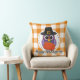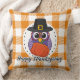 Pilgrim Owl on Orange Plaid - Happy Thanksgiving Kudde