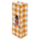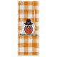 Pilgrim uggla på en orange, vit buffel pläderade mönster med texten "Happy thanksgiving".