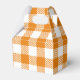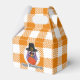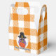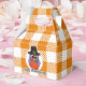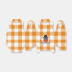 Pilgrim uggla på en orange, vit buffel pläderade mönster med texten "Happy thanksgiving".