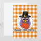 Pilgrimslolja på orange rutmönster - Glad tacksäge Julkort