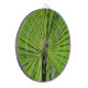 Palmblad. Gröna blad fläkta ut sig runt omkretsen av tavlan. Solljuset spelar genom bladen med ljus och skuggor.