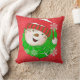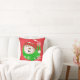 Klassisk kudde av Snögubbar, så söt och färgstark, har en röd bakgrund med vit liten polka dots med vit grönt med vita prickar och varje sida har en leende snögubbe med hatt, scarf, morot och snöflingor!