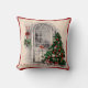 Pillow med ett vackert fönster på natten med ett vackert fönster vid julfönstret i Julgran och ljus.
