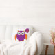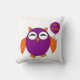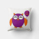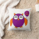 Den här fantastisk-kudden har ett sött uggla med ögon stängt som om det vore sömnsamt och sött klo. Dess kropp är lila och dess vingar, öron och klo och näbba är orange. Uggla håller en ballong med "happy halloween" skriven på den och är redo till party.