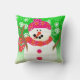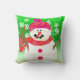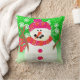 Om du snögubbar kärlek och ljusa färger så kommer du att kärlek denna ljusa och trevliga dekorativ kudde i Lycklig med en snögubbe med en stark Snögubbe och rosa hatt och halsduk, kvisande orange, morot och kol arm och mun mot bakgrund av ögon med mycket grönt vitt söt.