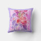 En vacker kudde eller kudde med blommor i romantiska nyanser av rosa, lilak och mauve, med en känslig blek flytta gräns från en vattenfärgsmålning av Judy Adamson.