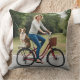 Ett koncept för framsidan av en kudde på dubblan: en söt bild av mor sitta på en cykel med hennes hund på en sträng.