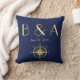 Monogrammade blå nautiska bröllop-kuddar med kompass och anpassade från guld - du kan ändra bröllop datum och lägga till initialer