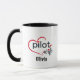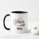 Pilotfru, hjärta och flygplan, Modern Mugg Visa kärlek och pride med vårt enkla, moderna mugg, med en charmerande hjärtkonstruktion som omger ord "Pilot Wife", kompletterad med ett litet rött flygplan i slutet av "pilot" och ett lekfullt rött hjärta i brev "i", vid bildens grund, finns ett anpassade för ett namn — perfekt för alla flygande makar! Checka ut matchande mugg för make! Upphovsrätten kommer snart i Stil design LLC.
