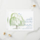 Texten på detta spara-datum-kort eller inbjudan för pilträdsbröllop är helt anpassningsbar. För att ändra den, använd alternativet "personalisera". För mer omfattande textändringar, som typsnitt, typsnittsfärg och textlayout, klicka på "anpassa". Designen representerar ett pilträd i vår- och sommarfärger i ljusblått och grönt. Den passar bra för ett vår- eller sommarbröllop, ett utomhusbröllop och för ett naturälskande par. Även om den för närvarande är anpassad som ett spara-datum-kort för bröllop, kan den också användas för en brudfest eller årsdagskalas. Den kanske också passar för andra speciella tillfällen. Använd bara din fantasi... allt du behöver göra är att ändra texten.
