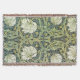 En blommigt-filt med mönster från William Morris (1834-1896), med titeln Pimpernel (1876). Vita vallmo med snurrande grönt bladverk och gult krattblommor. Han var en brittisk konstnär som var bäst känd för sitt inflytande på rörelsen Arts and Crafts och hans tapet-design.
