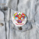 Denna runda knappnål visas med en festive Birthday Clown mask print design. Anpassa det här objektet eller köp som det är.