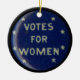 Röster för kvinnor! Denna keramiska julprydnad är en del av en minnesserie som firar 100-årsdagen av 19:e ändringen. Framsidan har en bild av en historisk pil från rösträttsrörelsen och det nittonde ändringsförslaget är skrivet på baksidan. Den här gåvan kommer säkert att uppskattas av alla starka kvinnor i ditt liv! Fullt 8! Samla in alla!