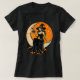 Förhäxa elegans med den här fantastiska T-shirt-designen som har en stil-häftande häxa på ett halvmånsstyrt måne. Hennes klassiska svarta klänning sprider sig mot en fet orange bakgrund som är späckad med stjärnor och fångar vintage Halloween-konstens reflexcharm. Med en flaska i hand och ett leende, är den här bilden perfekt för dem som kärlek med sin Halloween stil med ett nostalgiskt och glamoröst streck.