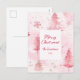 Pine Trees Pink Christmas Postcard Helg Vykort