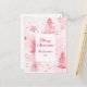 Pine trees in pink are a lovely vintage watercolor picture. In this charming pattern, snowflakes are falling on the snow-filled woods. All of the text, including "Merry Christmas", which is in a nice pink script, is editable on the front of the postcard. Be sure to change the example names and the year.