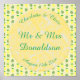 Denna poster har ett mönster med panäppelfrukter av tropiska gulter med handflatan av grönt toppar och söt blek grönt löv. Idealisk för en sommar eller ett tropiskt tema Bröllop. Det finns en gult med vitt marmorerat mönster på den som innehåller anpassade så att du kan anpassa den här designen.