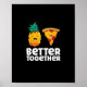 A playful food-themed design featuring pineapple and pizza to celebrate fun debates and better-together humor.