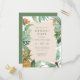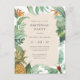 Är du värd för en tropiktematisk sommar-födelsedagsfest? Då har vi har perfektens inbjudningar till dig! Glöm kuverten och skicka dina inbjudningar som vykort som dina gäster kommer att skicka till kärlek! Denna utformning har en gräns av handmålade tropiska löv med en vattenfärgsananas i grund lämnat hörn. Bakgrunden är ett brunt färg med ett vitt gräns runt det. Inbjudan till typografi är en blandning av modern text och fetkursiv text till ge denna inbjudan som är klassens ännu moderna känsla.