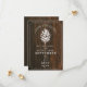En inbjudan till elegant och bröllop spara datum med en illustration av en vit gräs-kon över en barwood-inspirerad bakgrund.