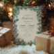 An elegant and rustic design featuring watercolor pine branches, cones, and snow-dusted greenery for a timeless woodland aesthetic. The soft sage tones and natural textures bring a cozy, winter forest feel—perfect for traditional gatherings or a nature-inspired Christmas event.