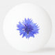 Ping pong boll med blå kornrosdesign riktad mot vit bakgrund - stäng upp fotografi