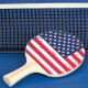 Ping pong-paddel visas med ett patriotiskt USA flagga-tryck. Anpassa det här objektet eller köp som det är.