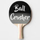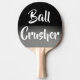 En silver och en svart pingpongpaddel med texten "Boll Crusher". Det är en underbar gåva till familjens pingpongspelare.