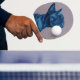 En pingpong fladdermus med en blå frenchie tittar upp mot himlar idealet för hundälskare eller Fransk Bulldog älskare.